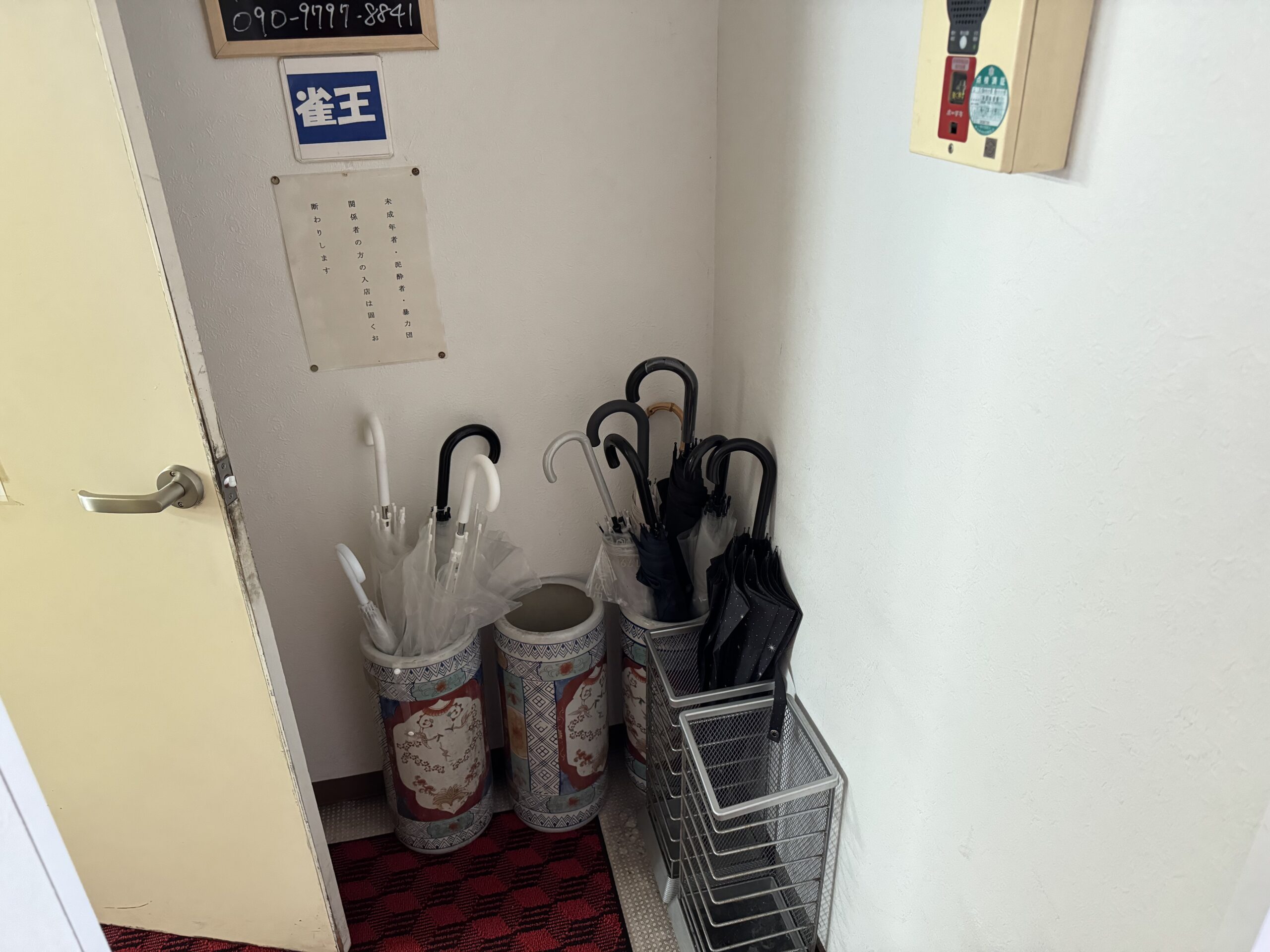 濡れた傘を雀荘内に持ち込まれると、一気に高湿度になるため、牌がくっつき雀卓トラブルの原因となります。